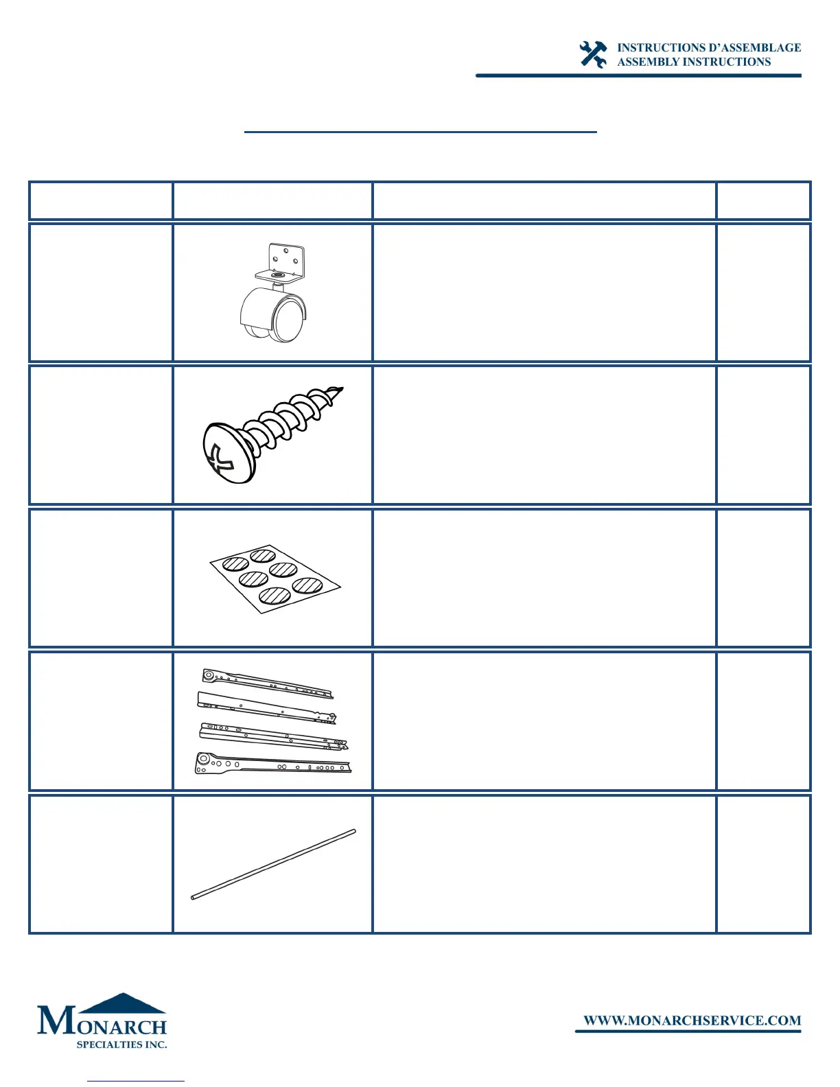 LISTE DES PIÈCES DE MONTAGE