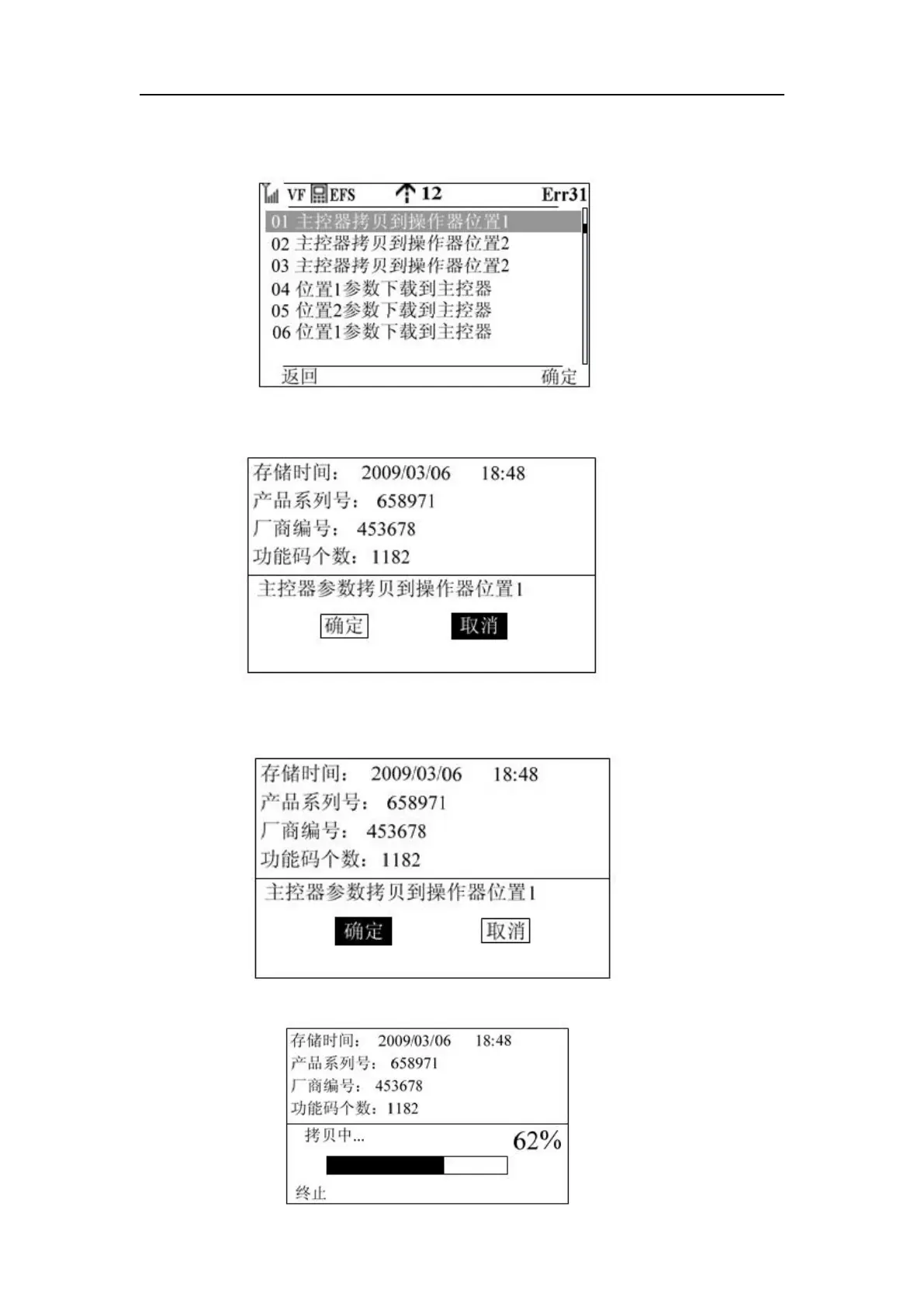 Step 5: Press function key 2 to start the parameter copy, the interface is as follows:
