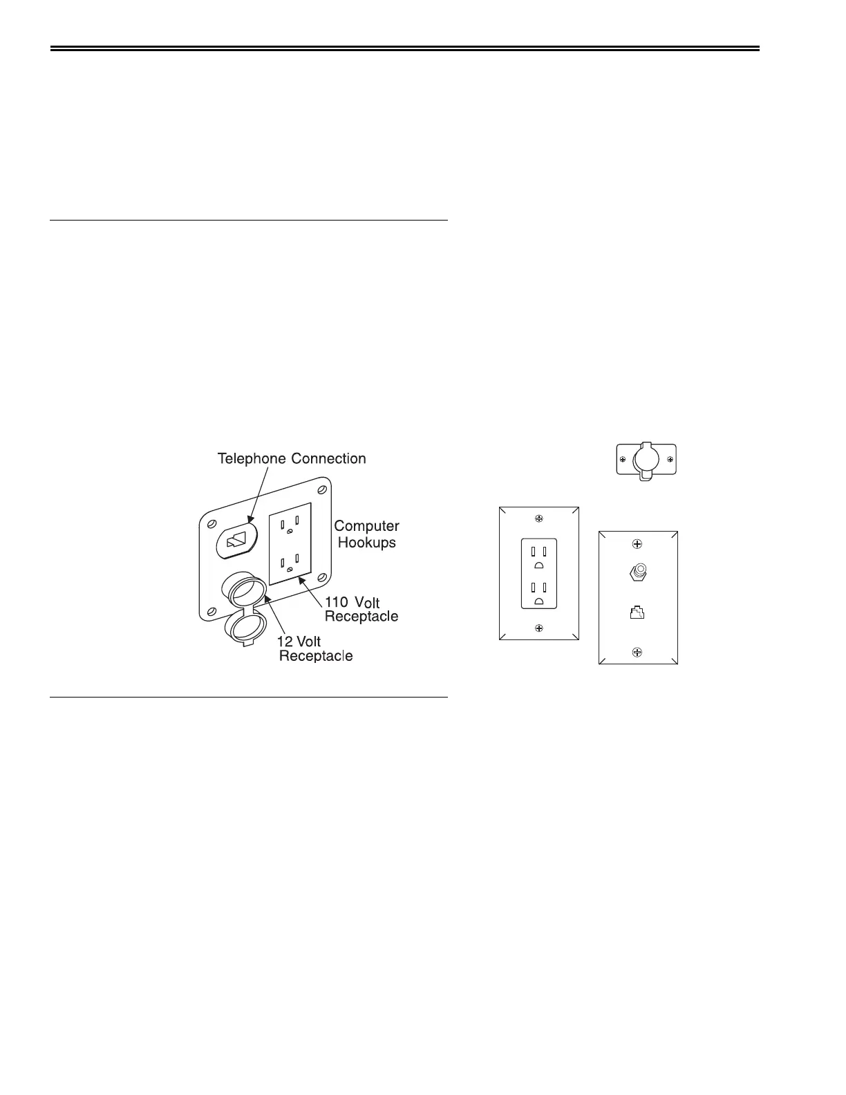 These include telephone jack, cable TV hook-up, a 12 Volt DC utility outlet and