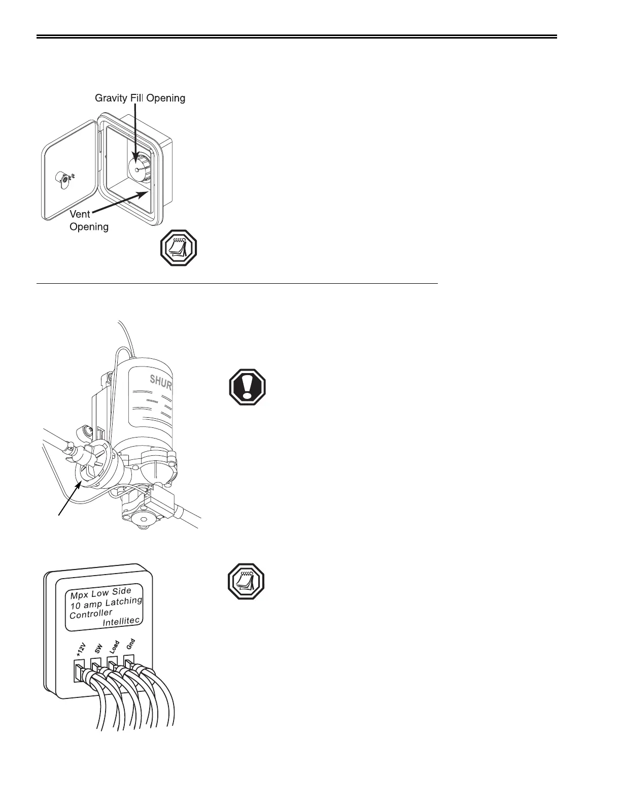 container into the fresh water tank. The gravity fill inlet can be used to
