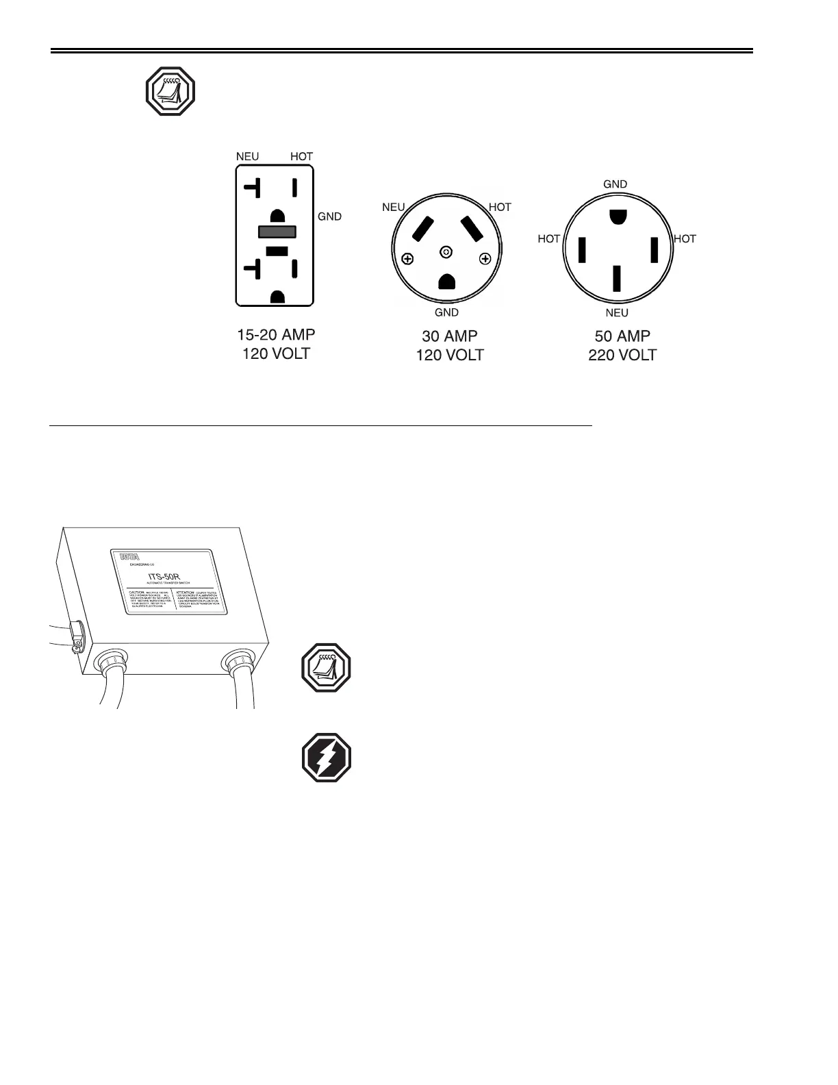 NOTE: Three types of shore power outlets most commonly used are