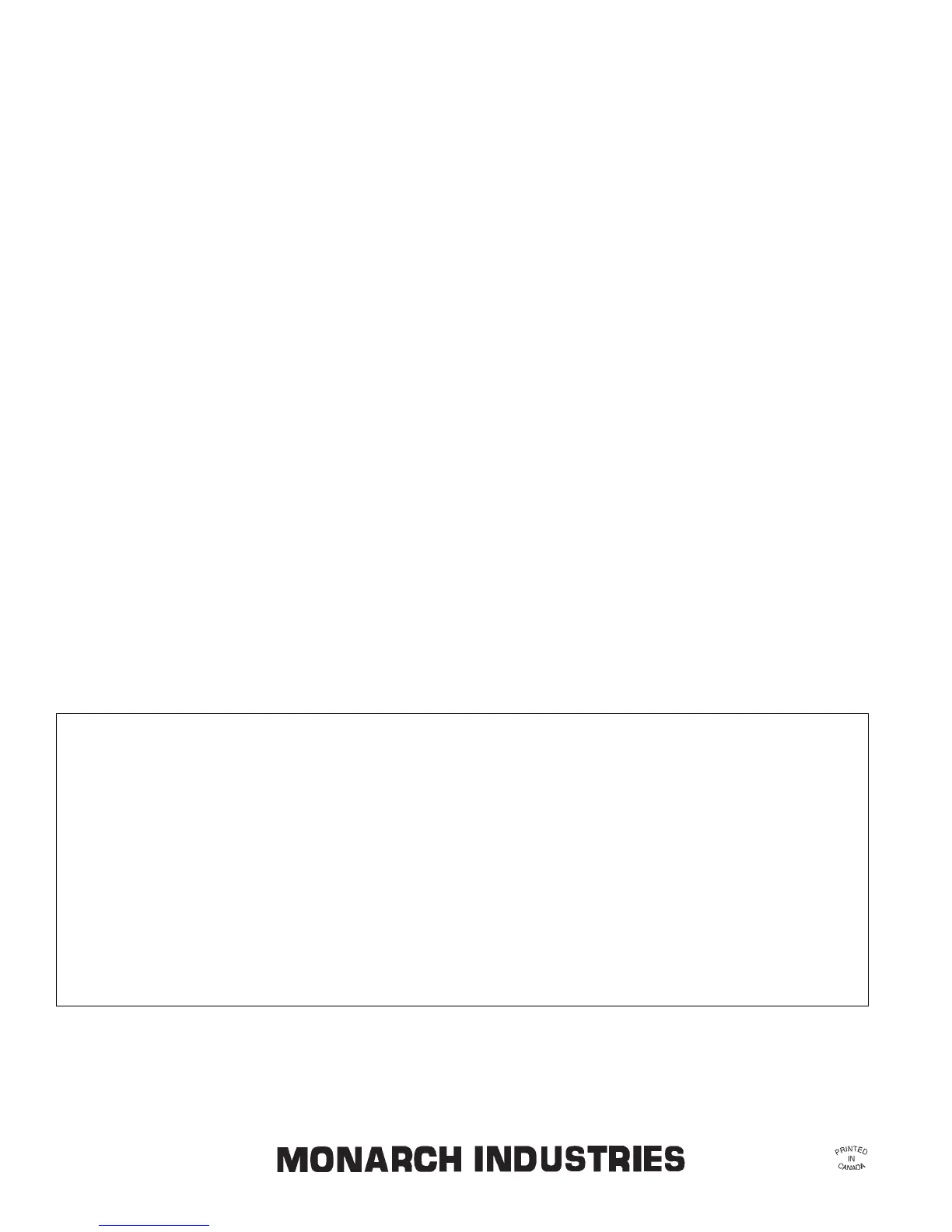 For warranty service see your nearest Monarch Industries Authorized Service Depot. THERE IS NO OTHER