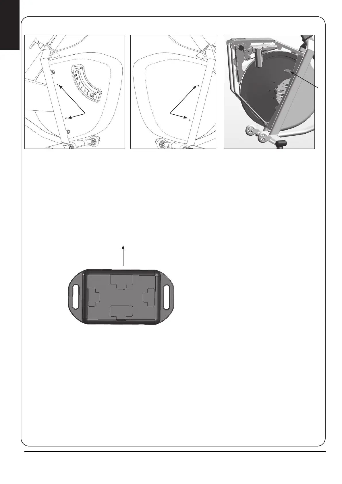 Lyft bort frontkåpan så att du kommer åt elektronikenheten (2) som nns på cykelns vänstra sida.