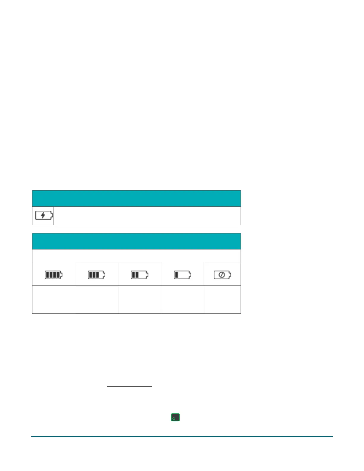 25% charge or less: Recharge the battery as soon as possible. The terminal may power off. Data will not be lost if