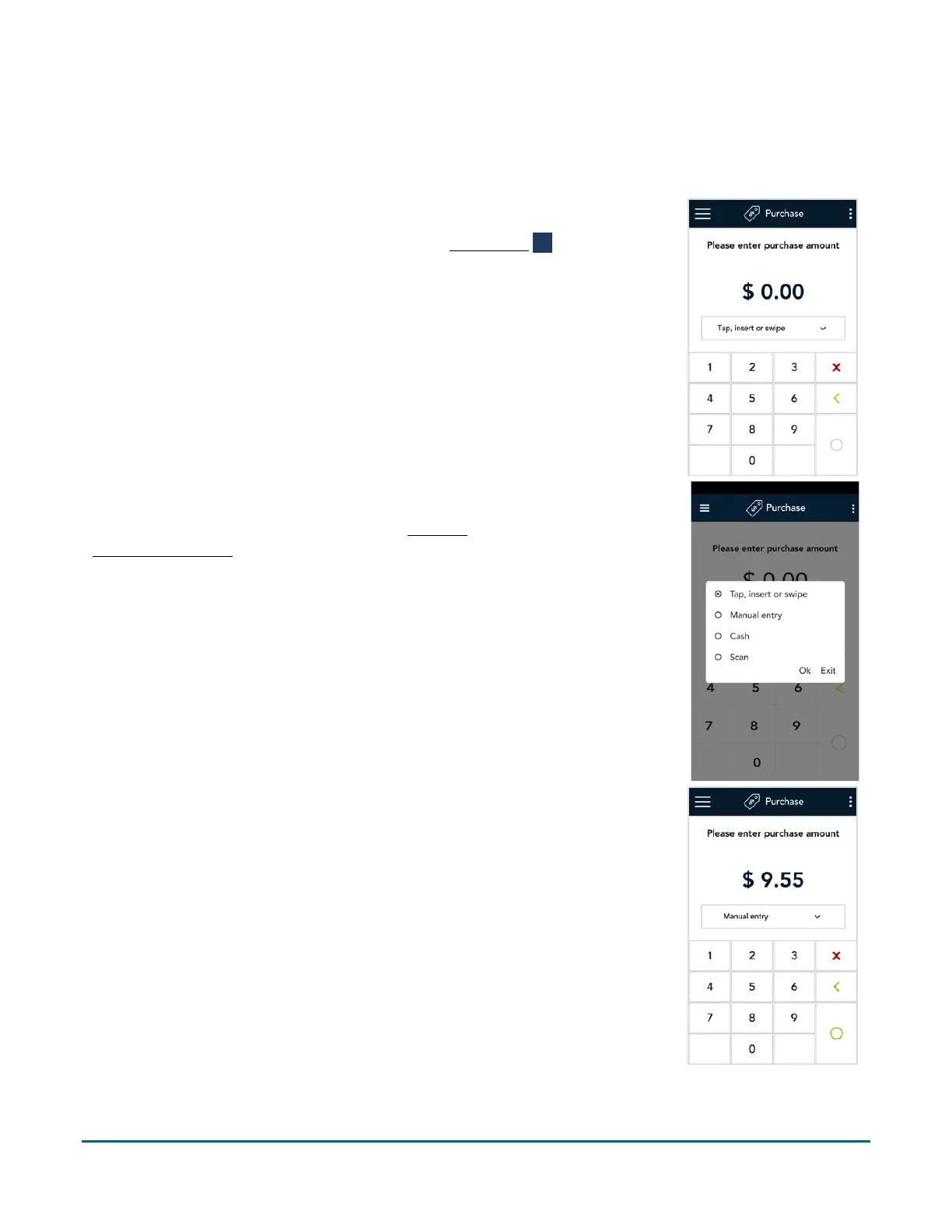 purchase amount first, or you can choose the method of card entry first.