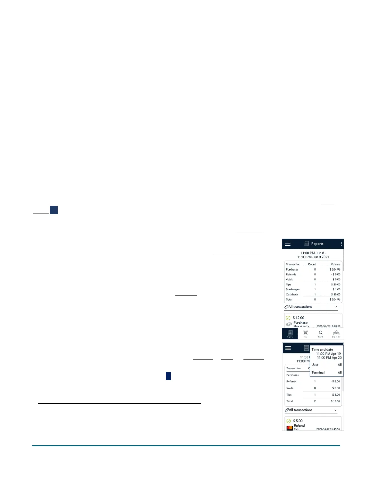 62). For example, if your reports are reset at 11 p.m., the summary shows transactions