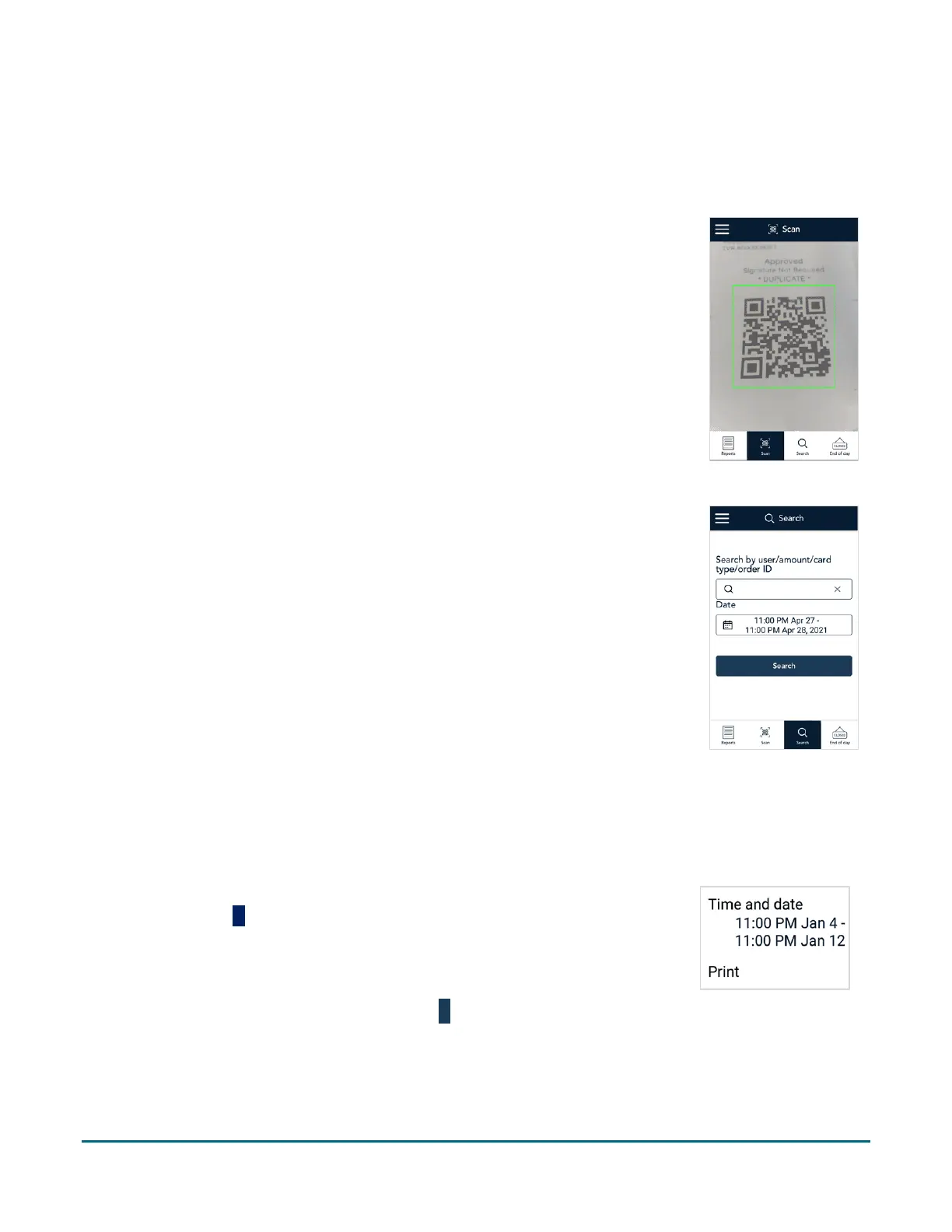 4. Tap Search to retrieve any transactions that match both the search value and the time/date range you