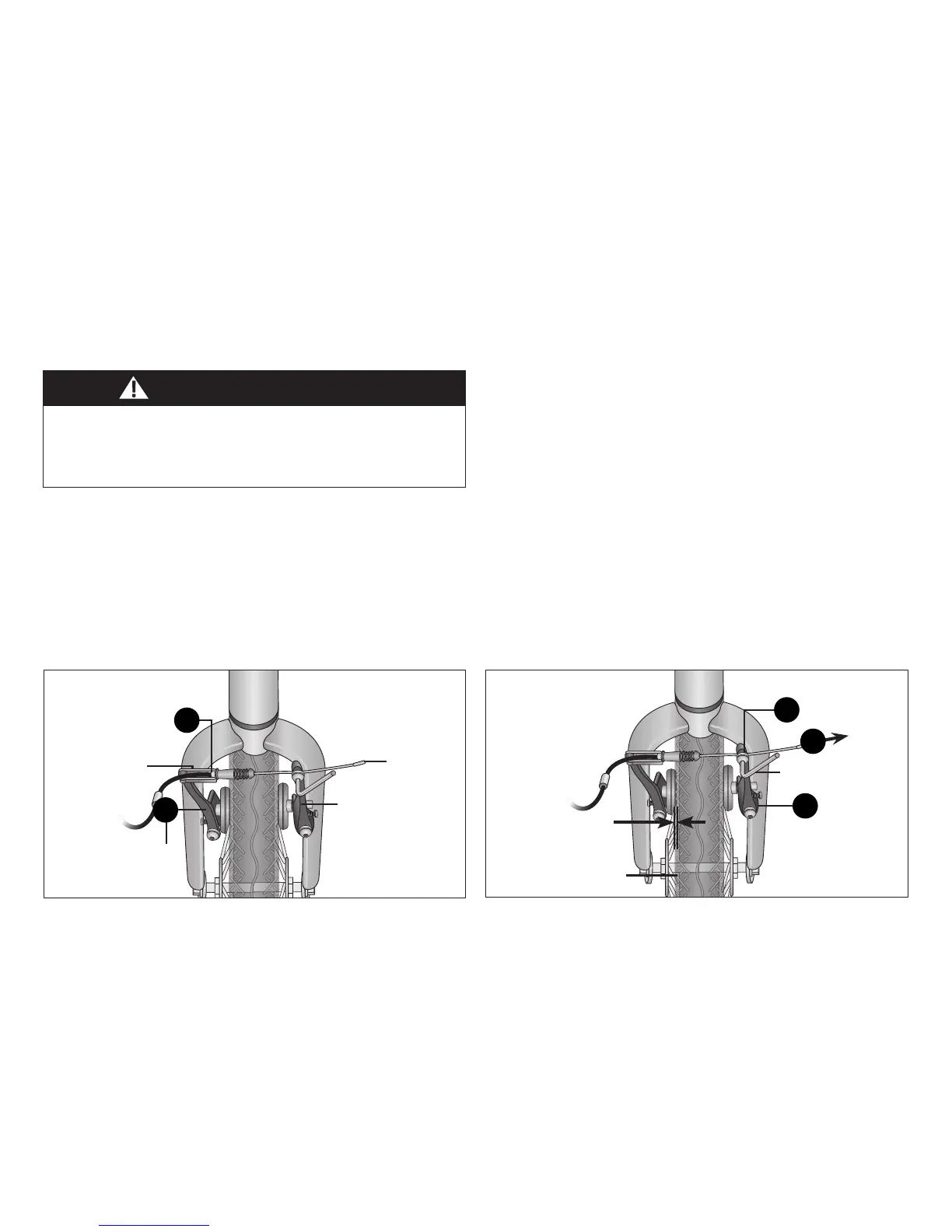 ❺ Mueva el brazo del freno derecho hacia el rin hasta que