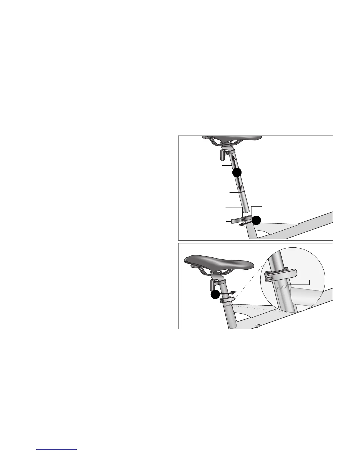 ❷ Ajuste la altura del sillín hacia arriba o abajo hasta que el