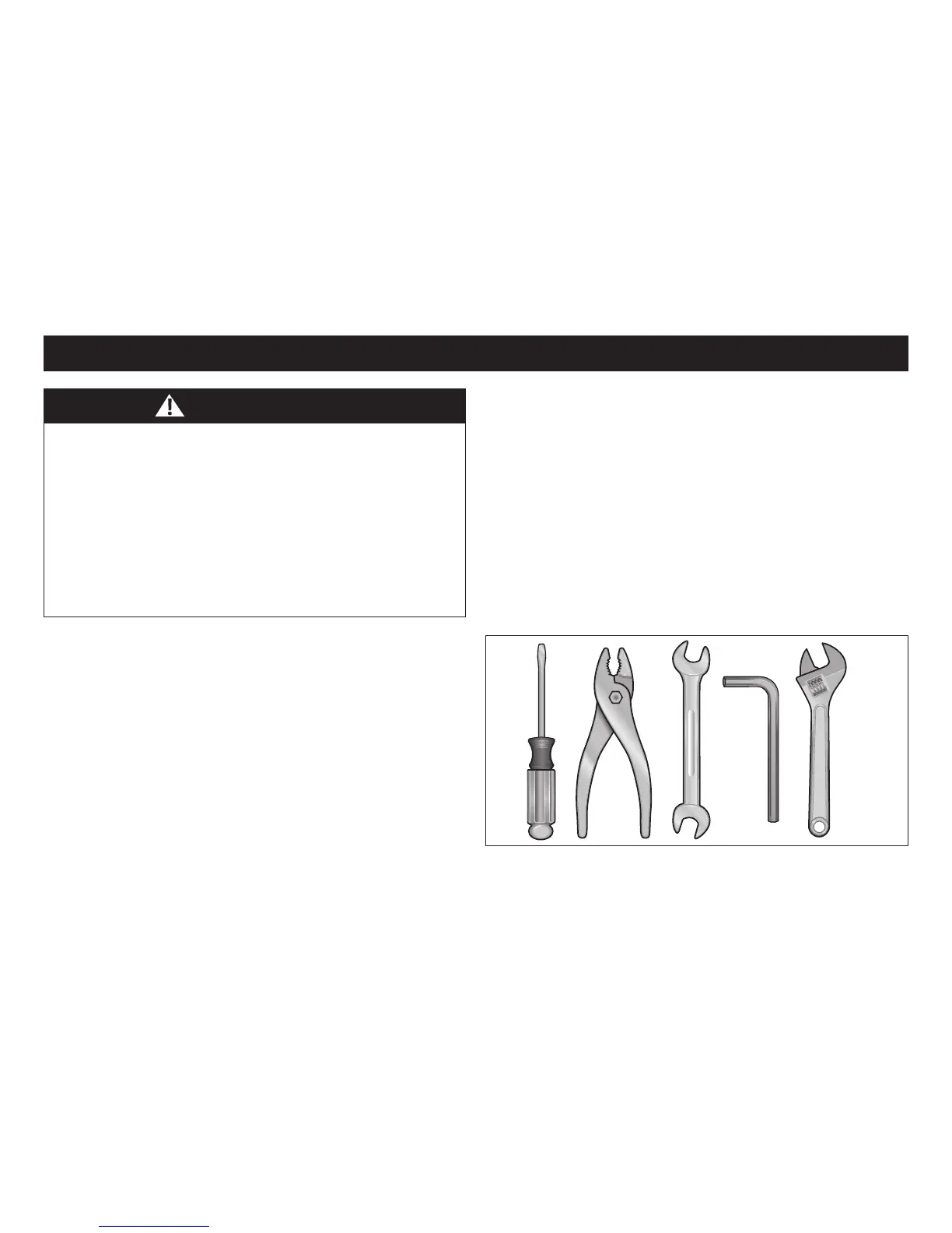 • Adjustable wrench or a 9 mm, 10 mm, 14 mm and 15 mm