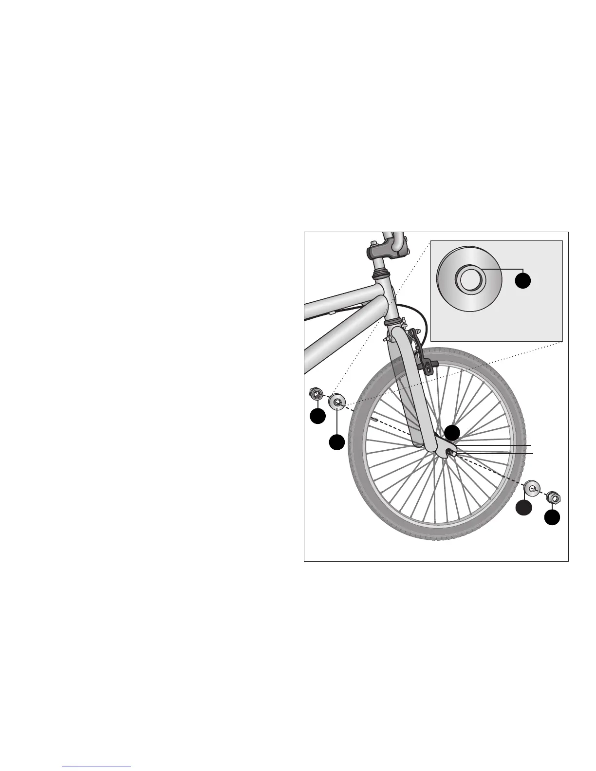 ❸ Aach the two axle nuts on the axle. Tighten one nut part