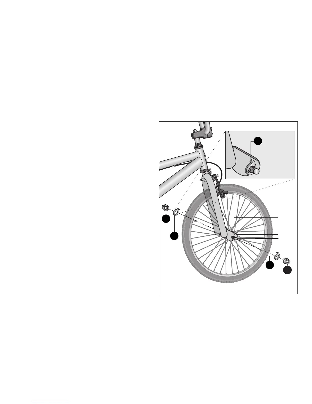 ❶ Loosen the axle nuts on the front wheel. If there is a washer