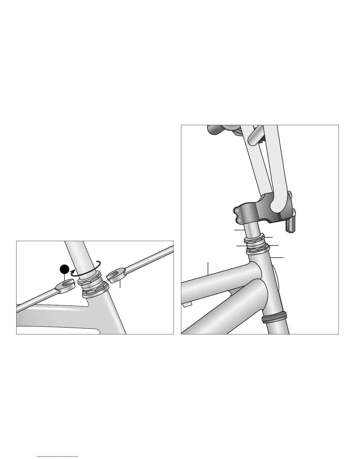 ❺ By hand, screw the upper threaded race down unl bearings