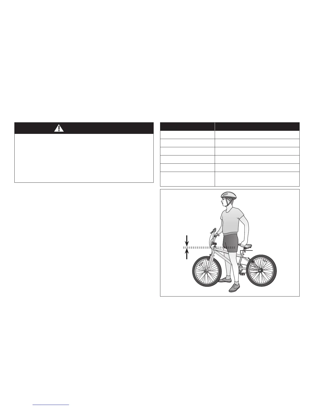 bicycle may result in loss of control of the bicycle. If the