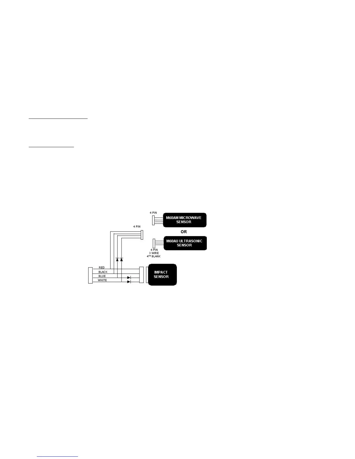 The sensor port is a 4 pin input that accepts an impact sensor, ultrasonic sensor or microwave