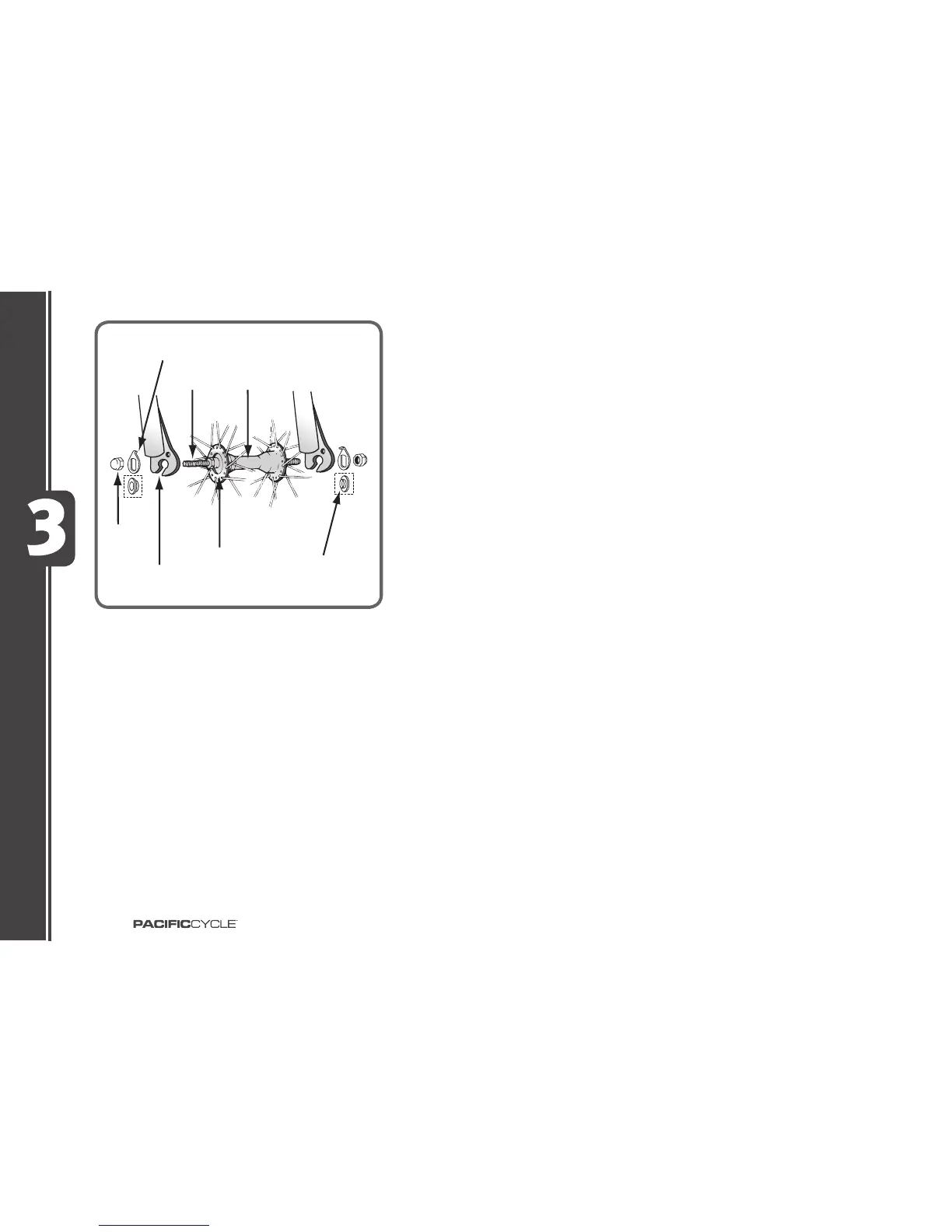 fork dropouts. If the wheel has a hook shaped washer, be sure that the hook is hooked