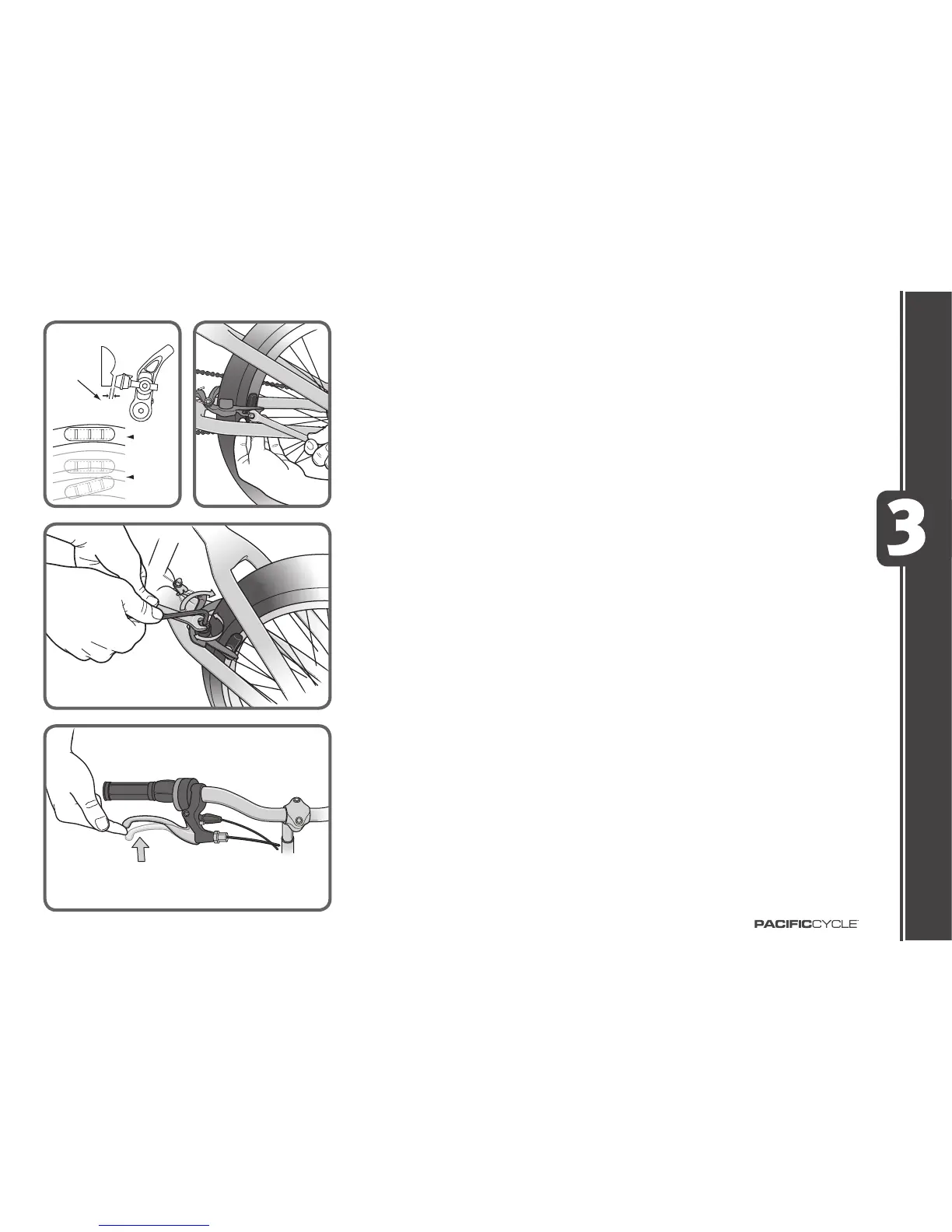 the rim on either side. Readjust as needed. Check that the brake cable tension allows