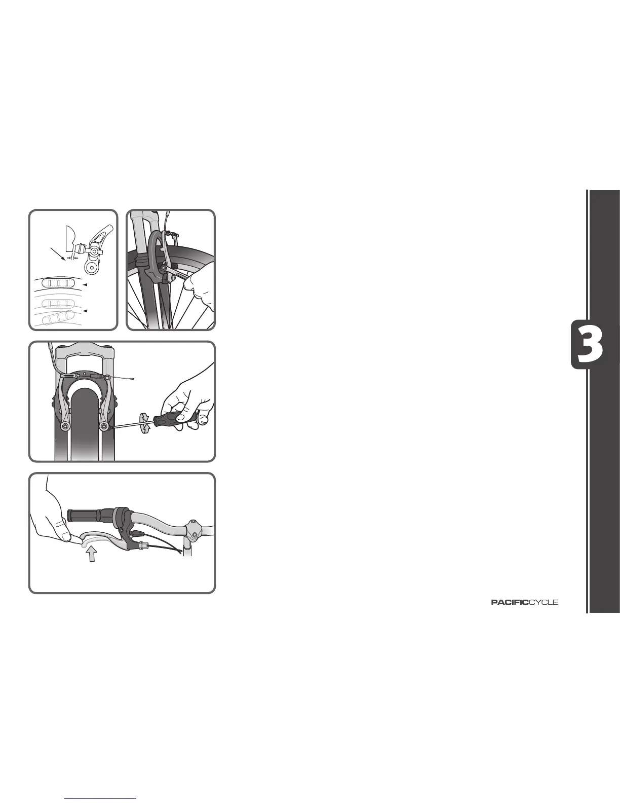 the rim on either side. Readjust as needed. Check that the brake cable tension allows