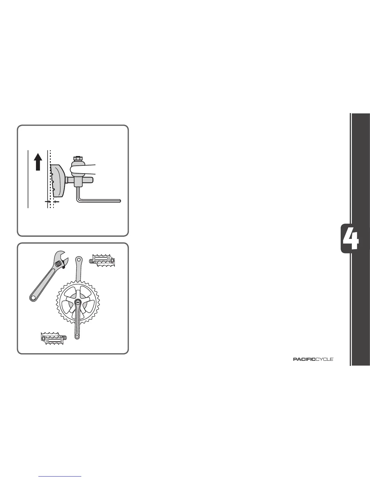 • Check that pedal bearings are properly adjusted. Move the pedals up and down, and