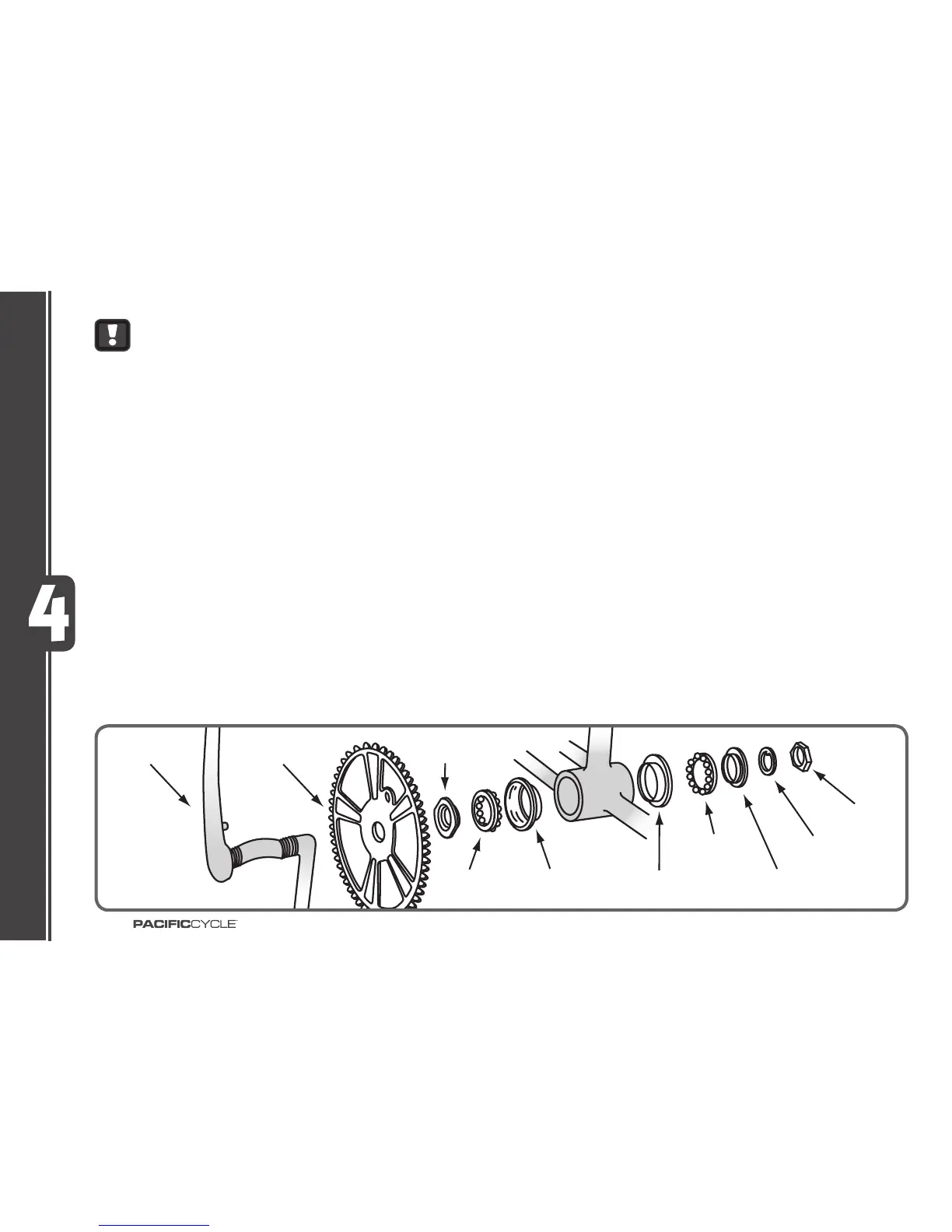 axle. Never ride your bike if the cranks are loose. This may be dangerous and will damage the crank arms beyond repair.