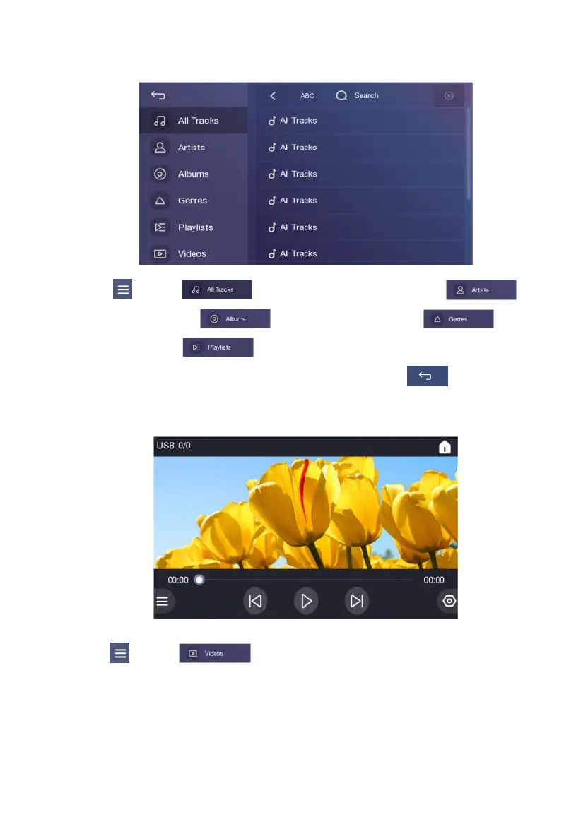 Touch 【 】, select【 】to show the All Music Tracks list , select【 】to