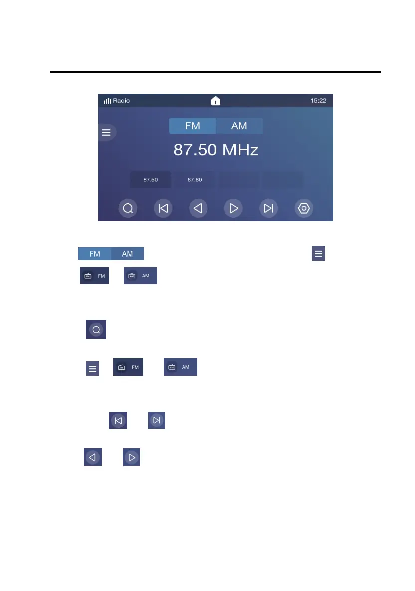 1. Touch or hold【 】or【 】to automatic search the radio station. If the station is searched, the