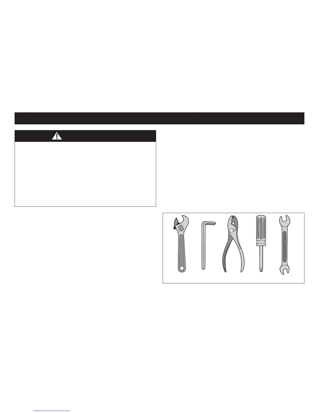 • Adjustable wrench or a 9 mm, 10 mm, 14 mm and 15 mm