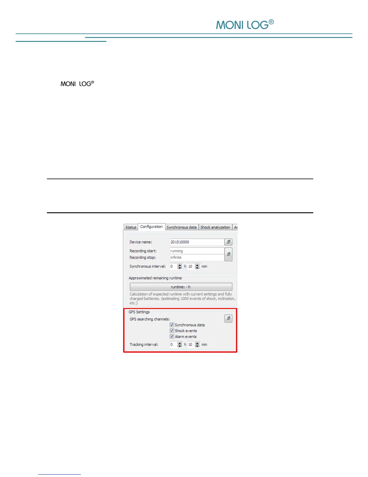 The GPS tracking interval can be defined in the field “GPS tracking” (see Figure 26). If no GPS