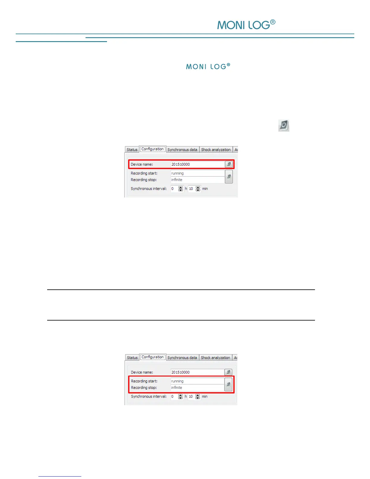 The name of the device can be changed in the programme tab “Configuration” in the input field