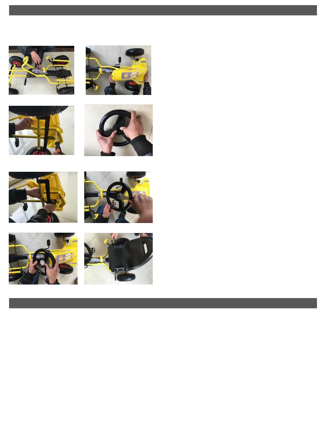 Сглобяването на колата с педали трябва да се извърши от възрастен. Следвайте точните указания и
