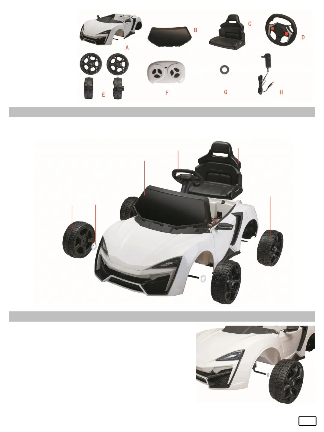 1. Installation of front wheels: Turn the body of the car backwards in