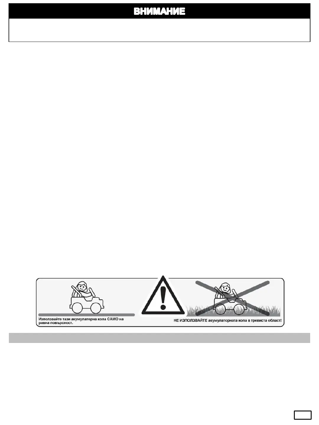 • За да се избегнат инциденти, уверете се, че акумулаторната кола е напълно безопасна преди употреба.