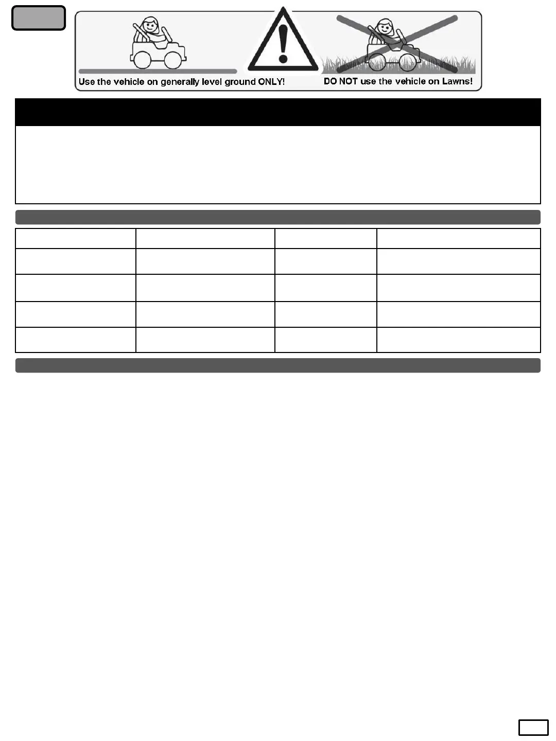 •One must always sit on the seat. Do not allow the child to step on the seat or to use the battery operated SUV, while