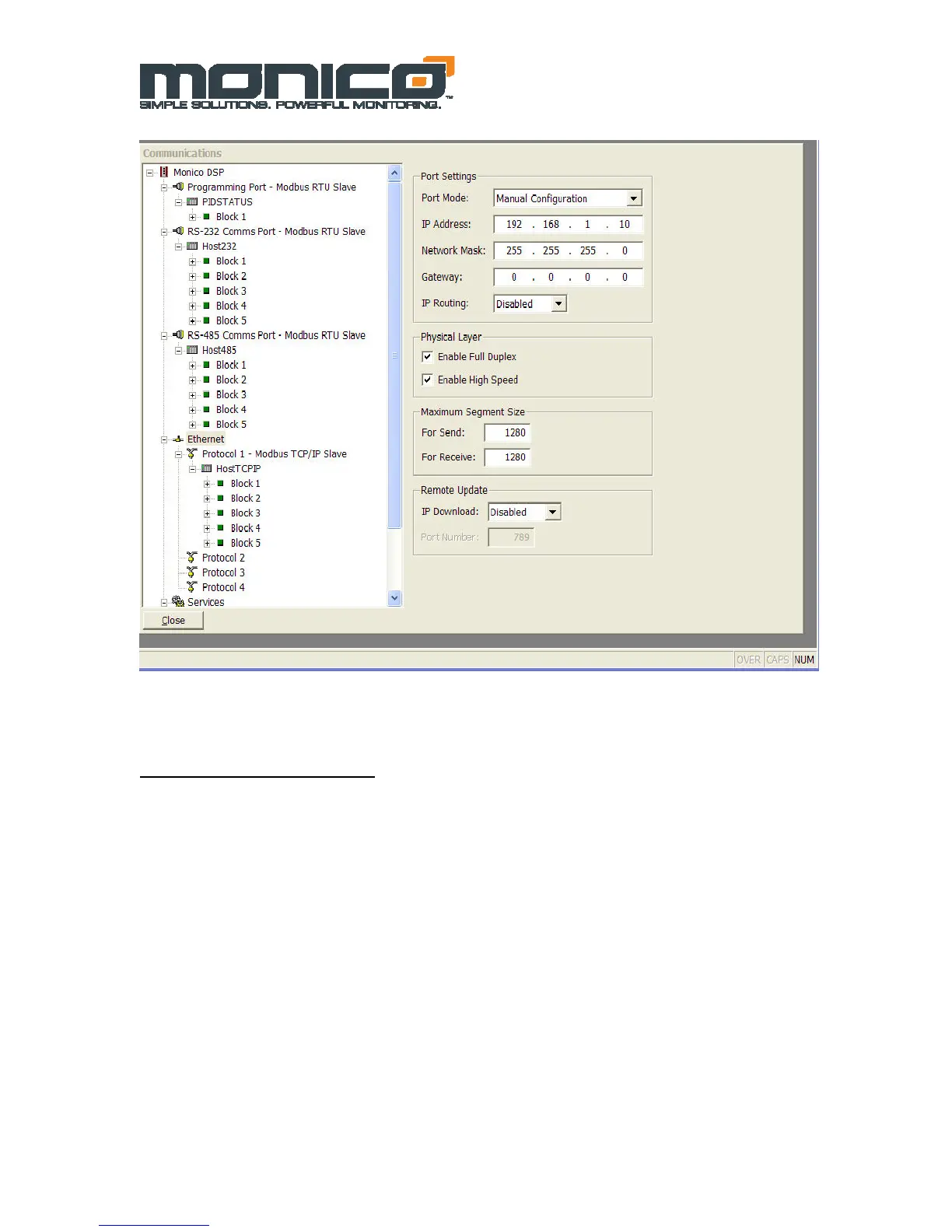 Figure 6.5: TCP/IP Ethernet Port Settings