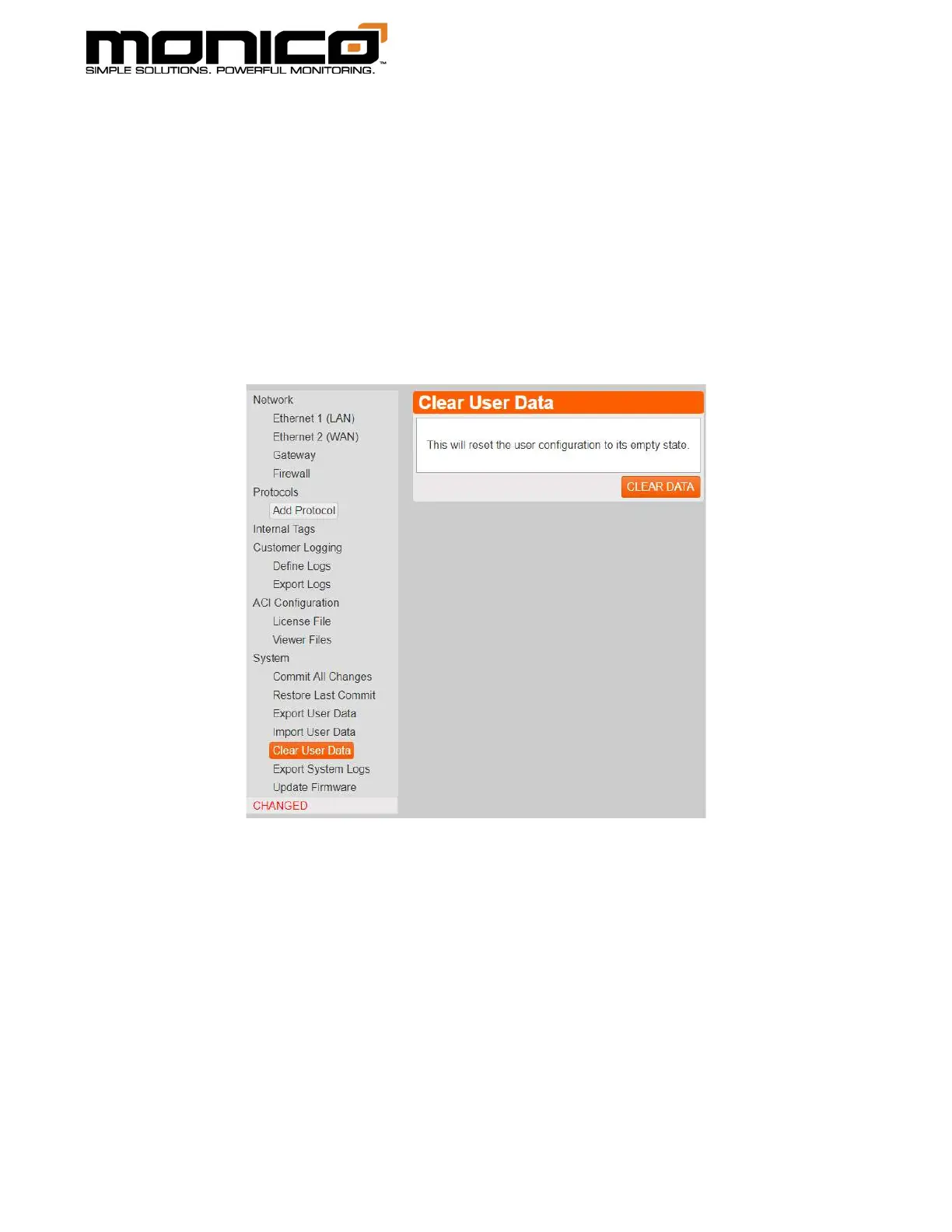 1. Click Clear User Data in the left menu toward the bottom. The following screen