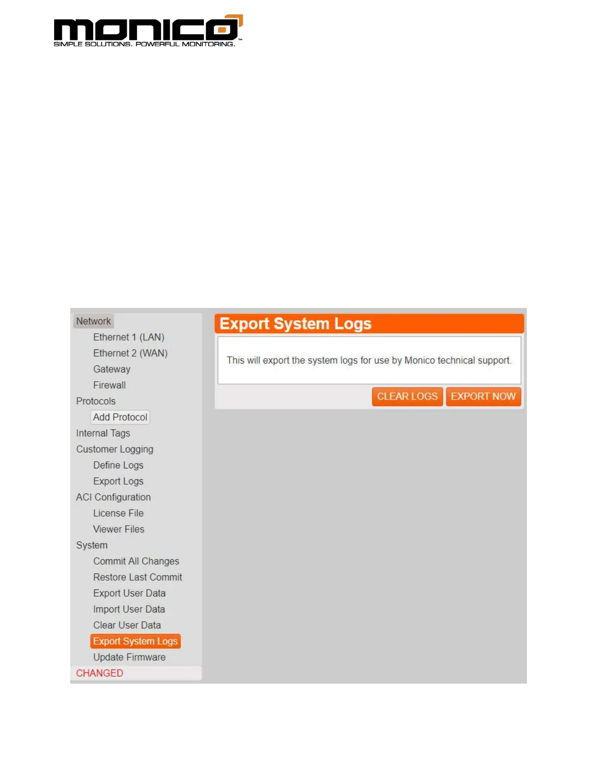 1. Click the Export System Logs button in the left menu toward the bottom. The