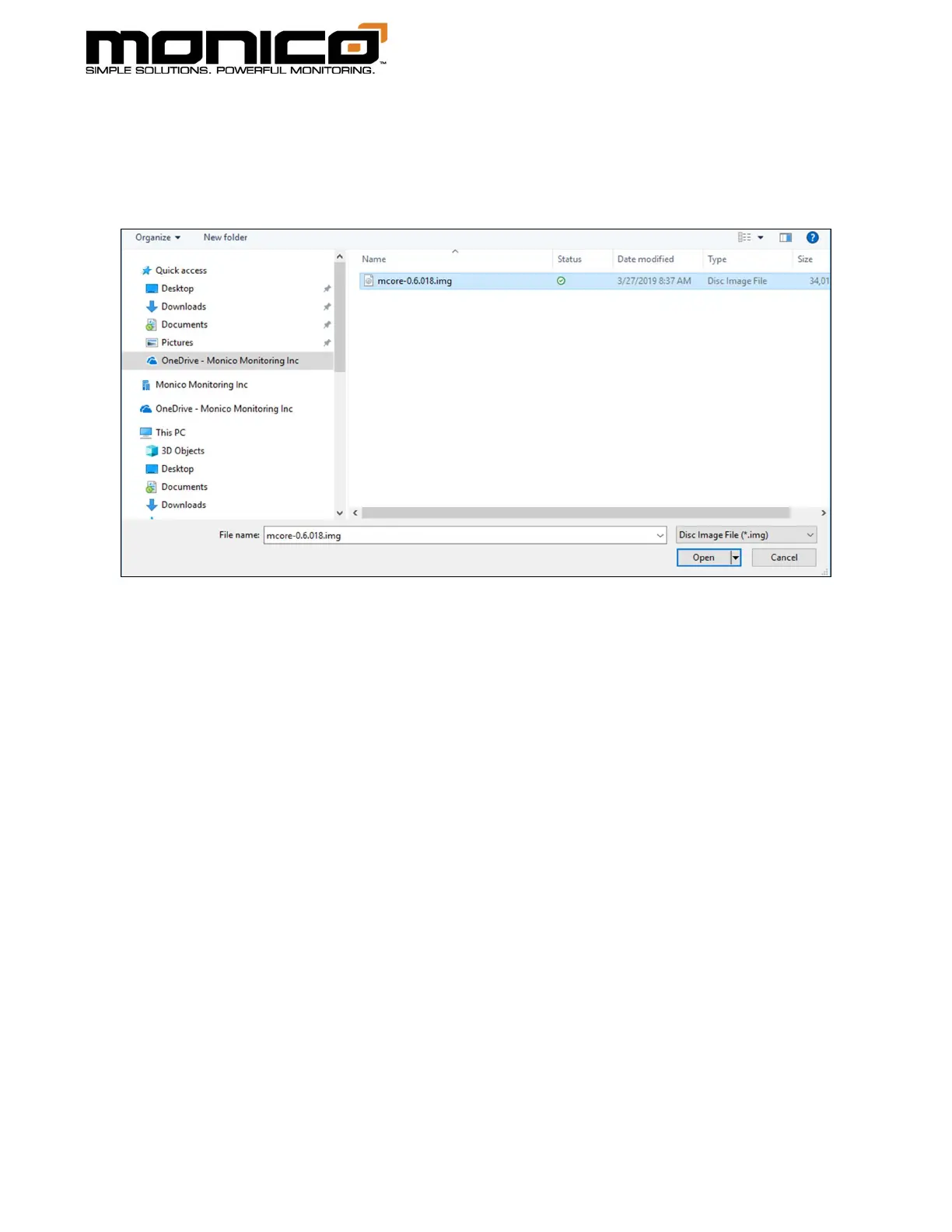 suffix .img in the filename i.e. mcore-0.6.018.img. After selecting the file, click