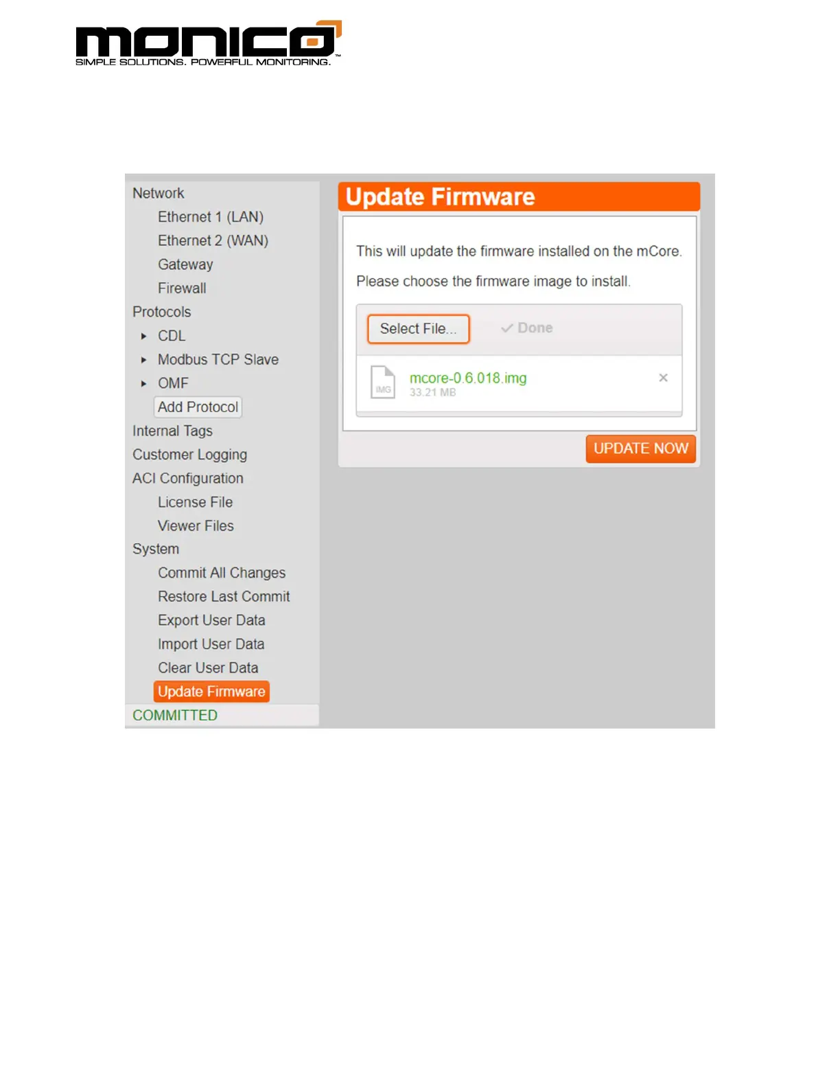 3. Once the file has completed the upload 100%, click UPDATE NOW to begin the