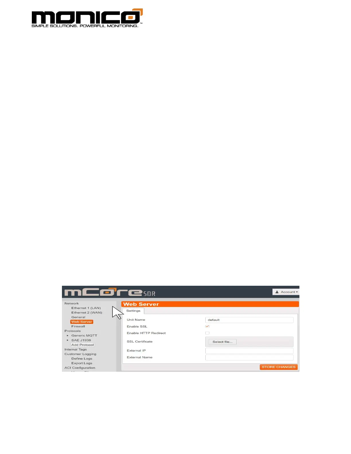 certificate, and allows the user to give the mCore an external IP address and name for