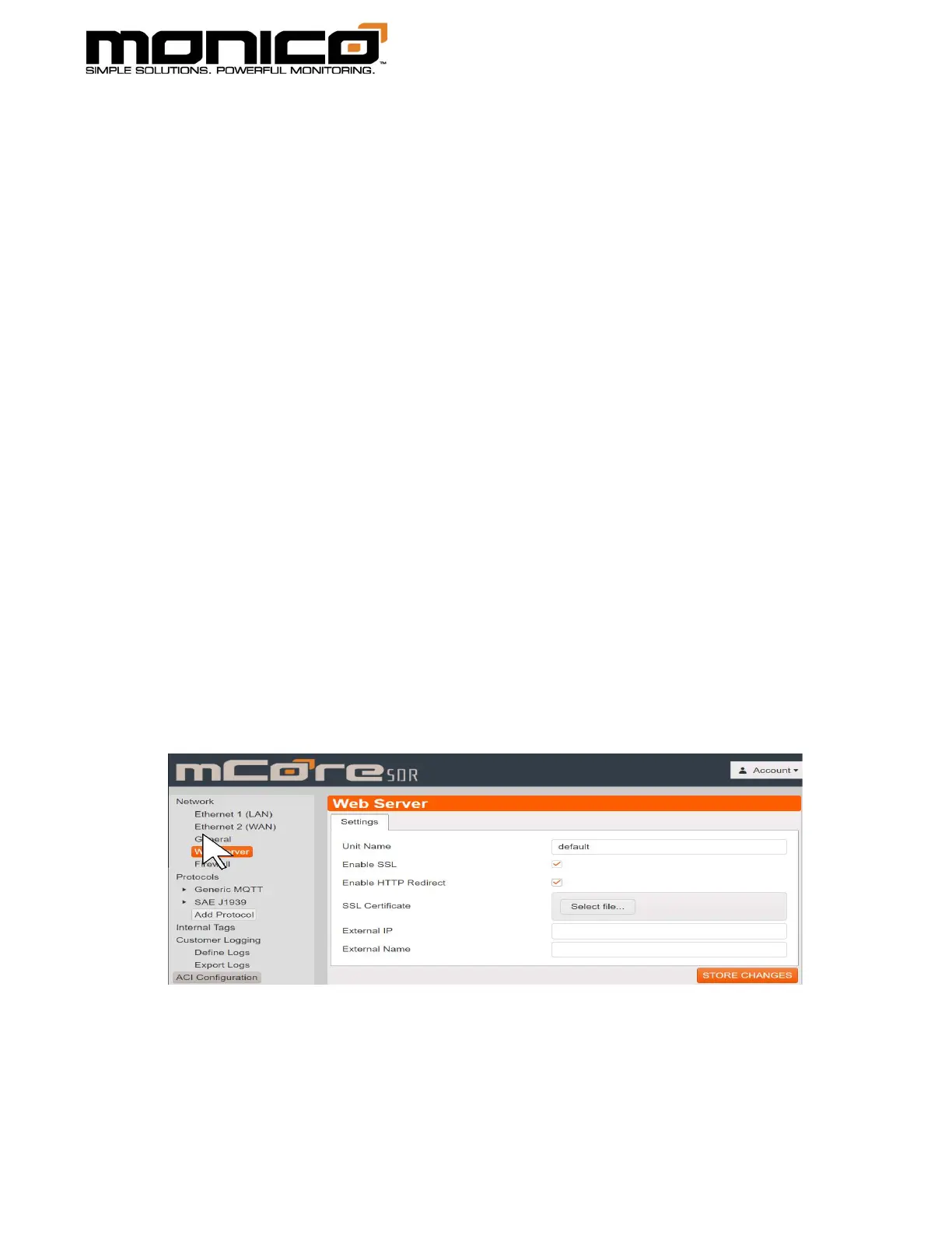 1. To upload an SSL Certificate, click the Web Server button in the left menu