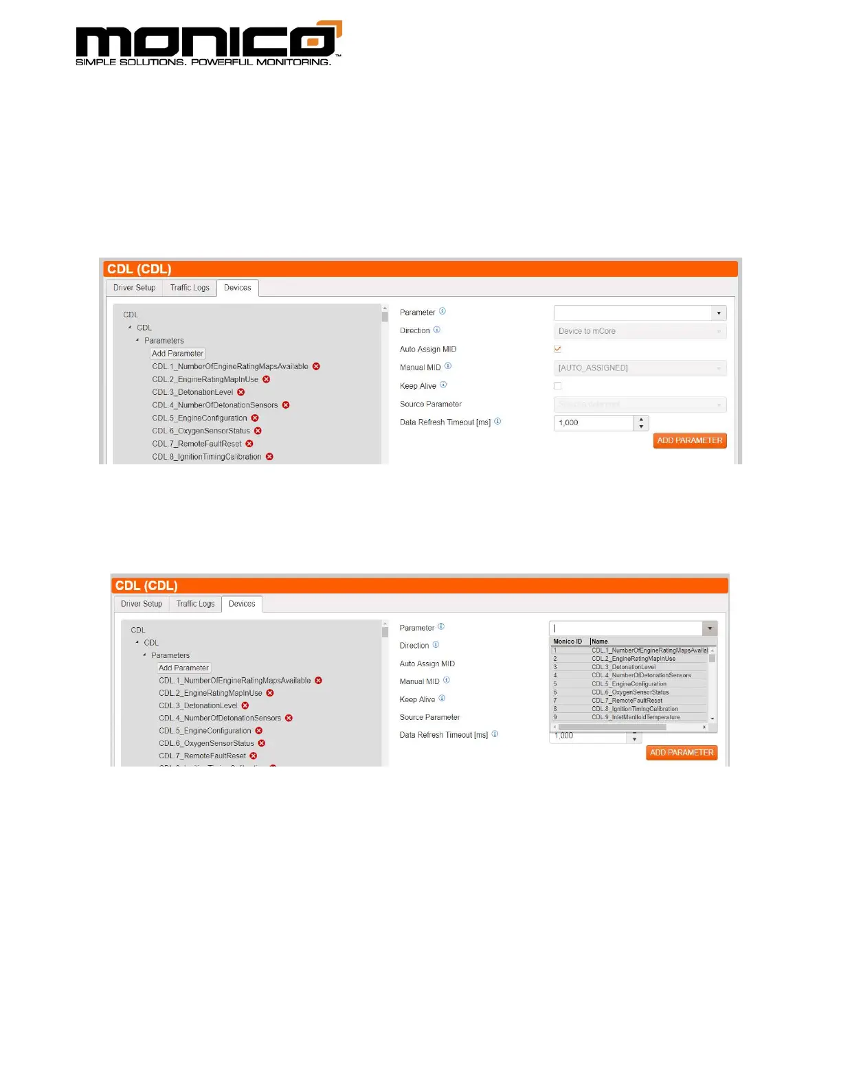 8. Click the Devices tab. The following screen will appear. To add a parameter to