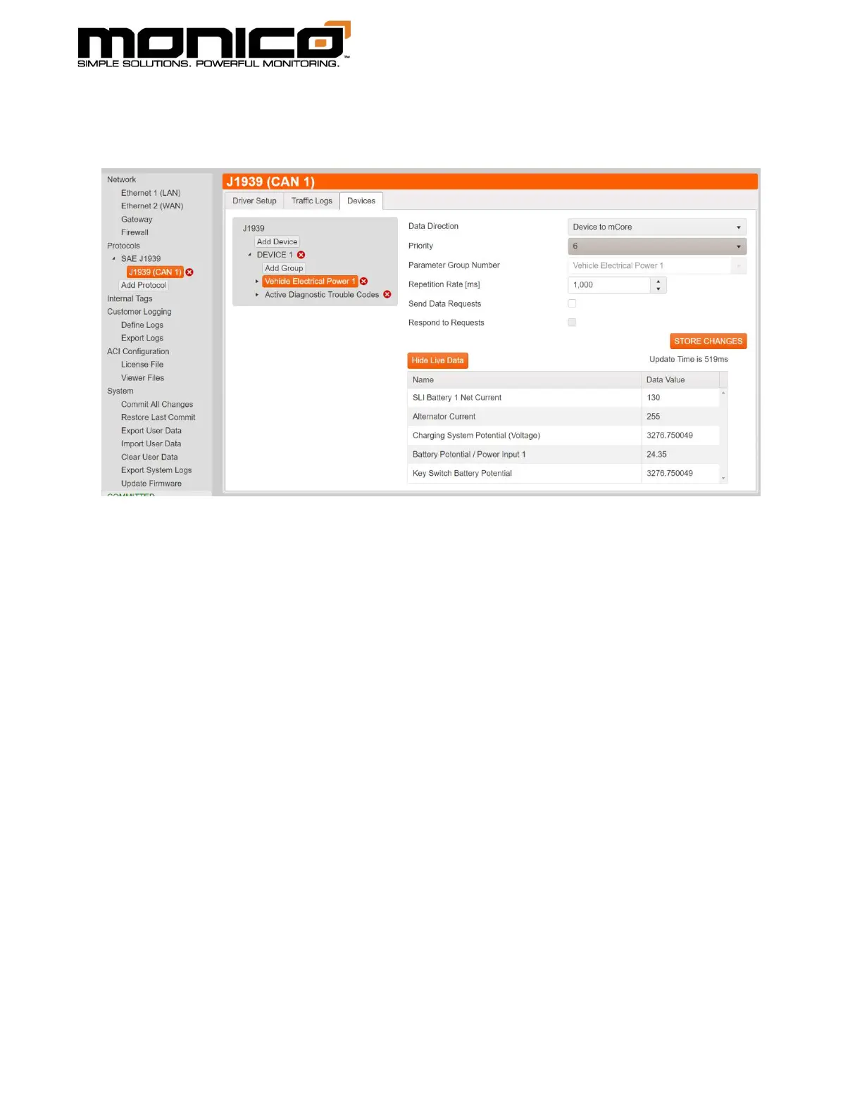 4. To stop watching live data, click the Hide Live Data button in the center menu.