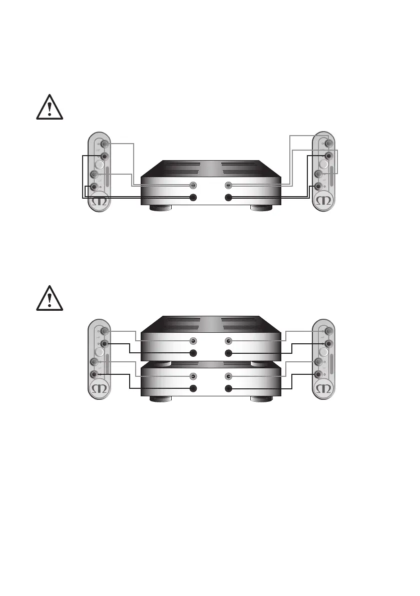 GOLD系列中,底端的接线端子连接至低音音箱,顶端的接线端子连接至双路扩音器的