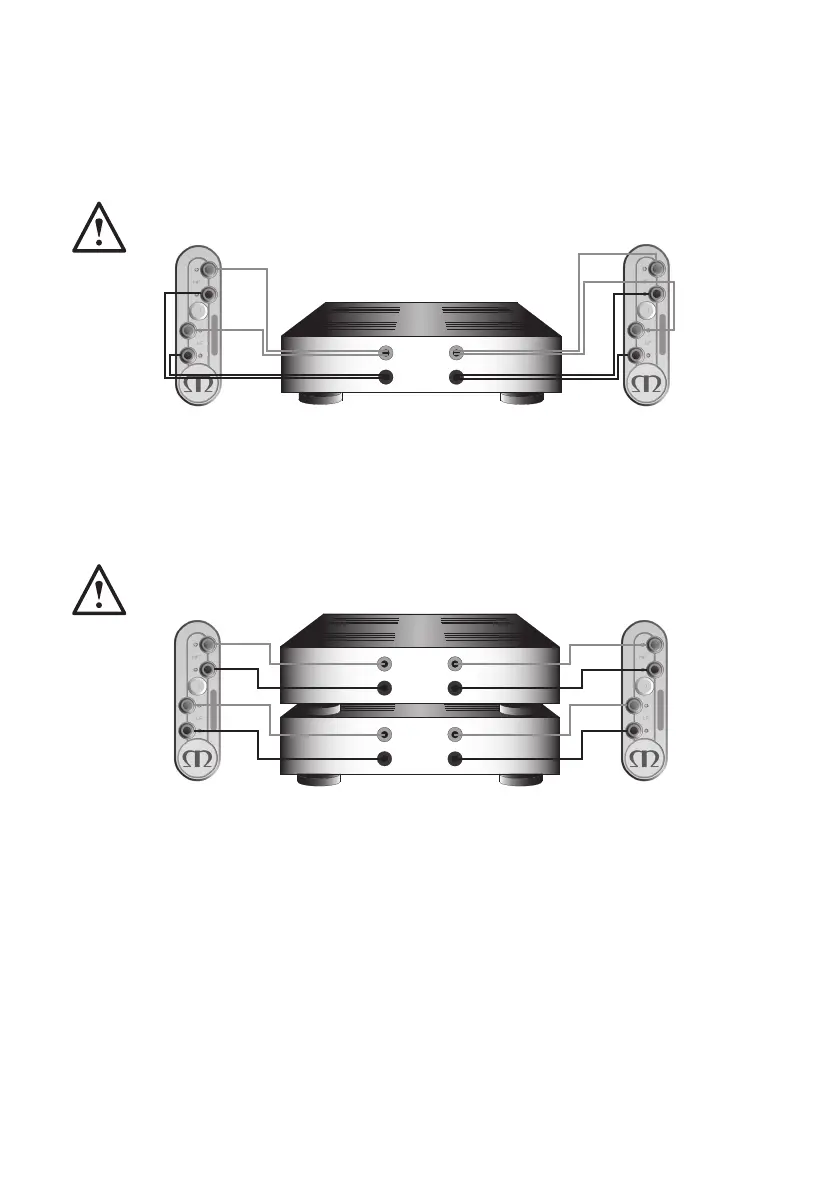 amplicateur aux terminaux du haut du haut-parleur et un autre jeu de câbles aux terminaux du bas depuis
