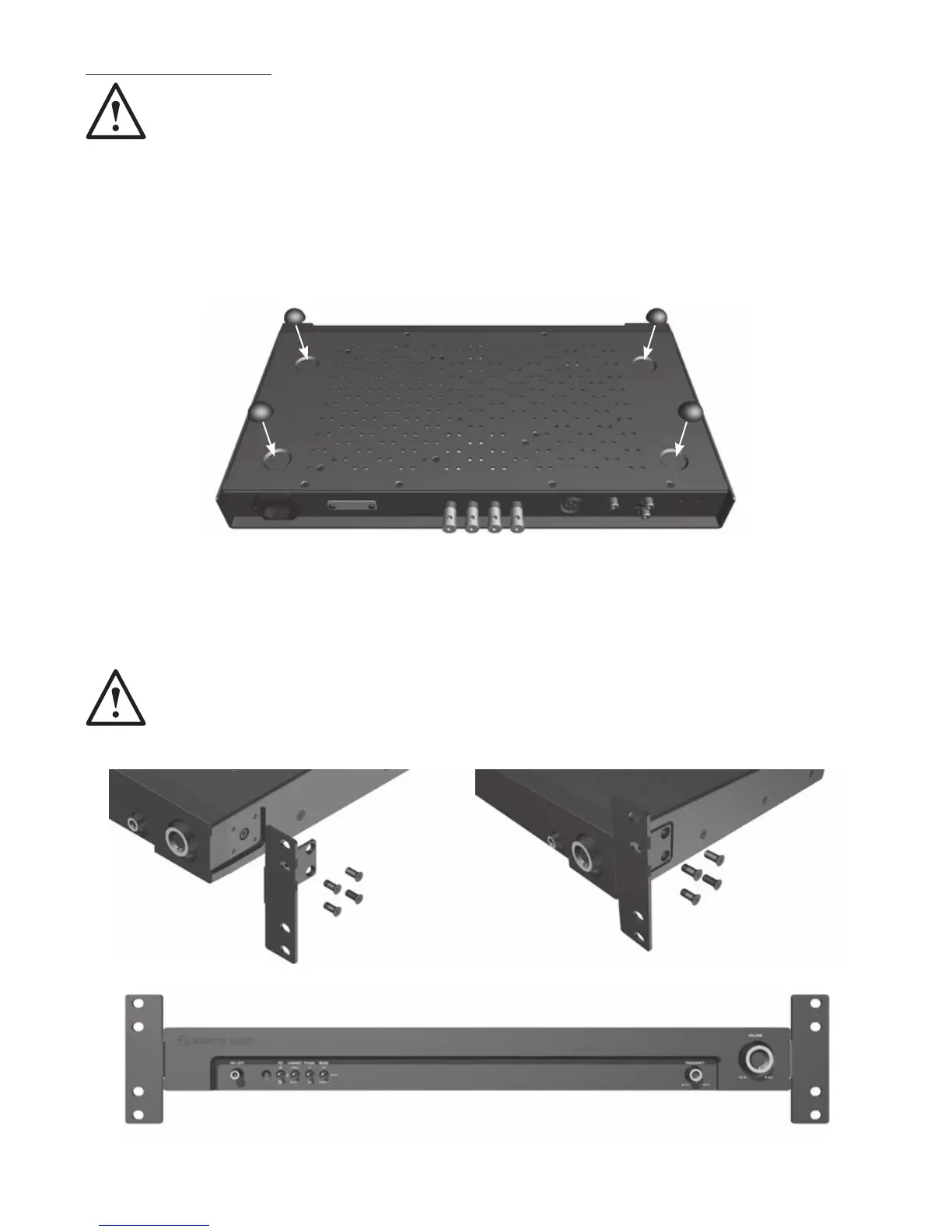 Перед установкой усилителя в стойку нужно прикрепить прилагаемые кронштейны.
