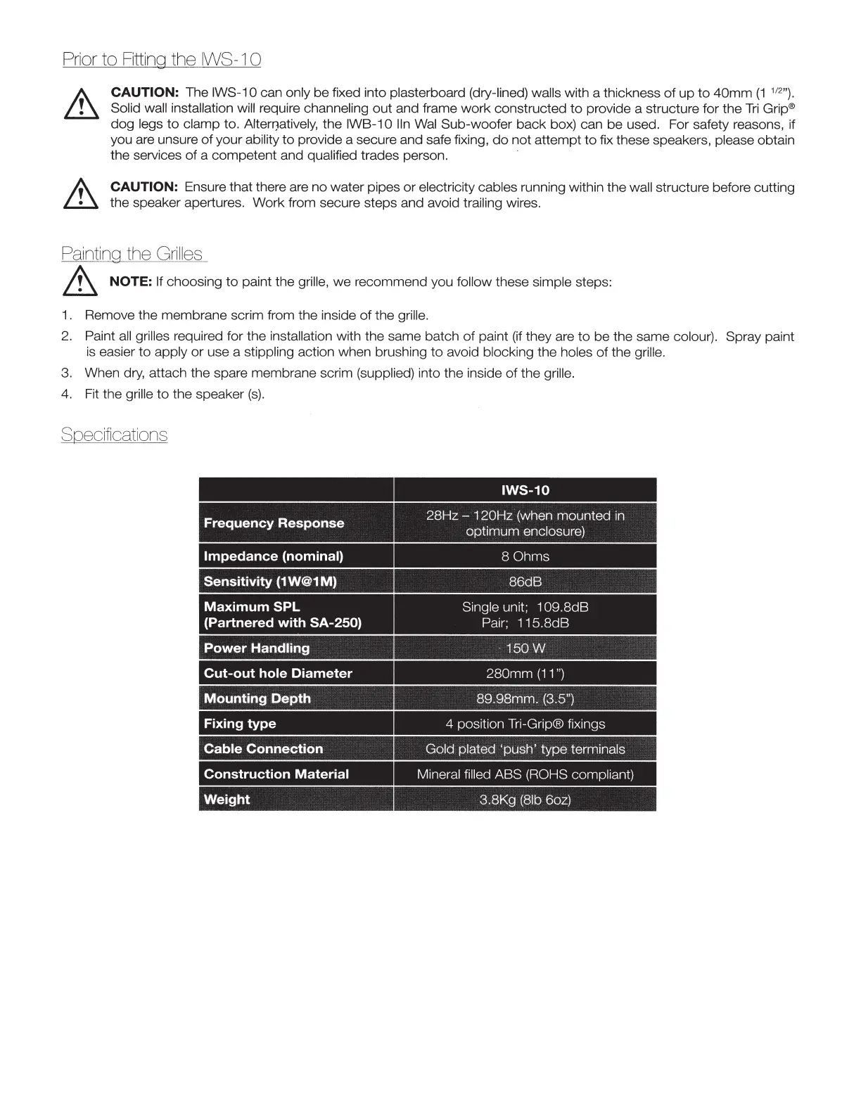 CAUTION: The IWS-1 0 can only