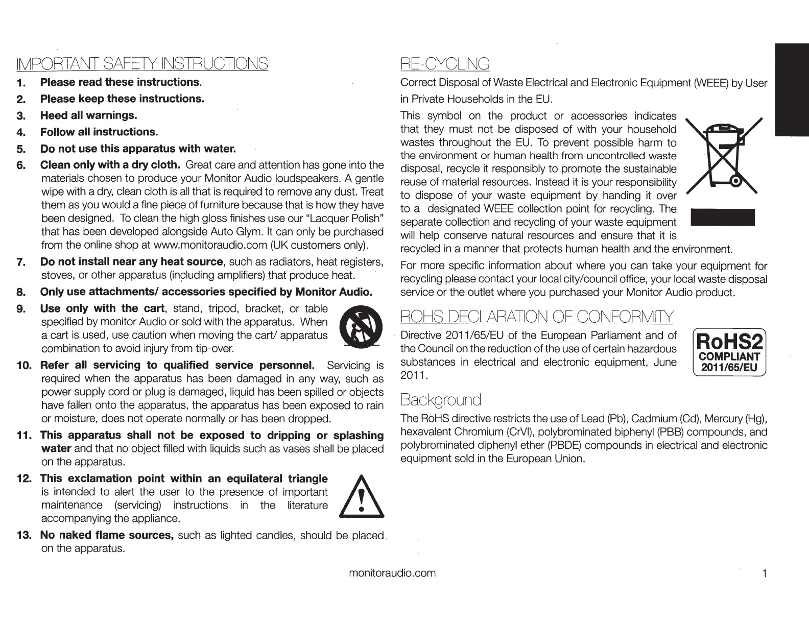 Only use attachments/ accessories specified by Monitor Audio.