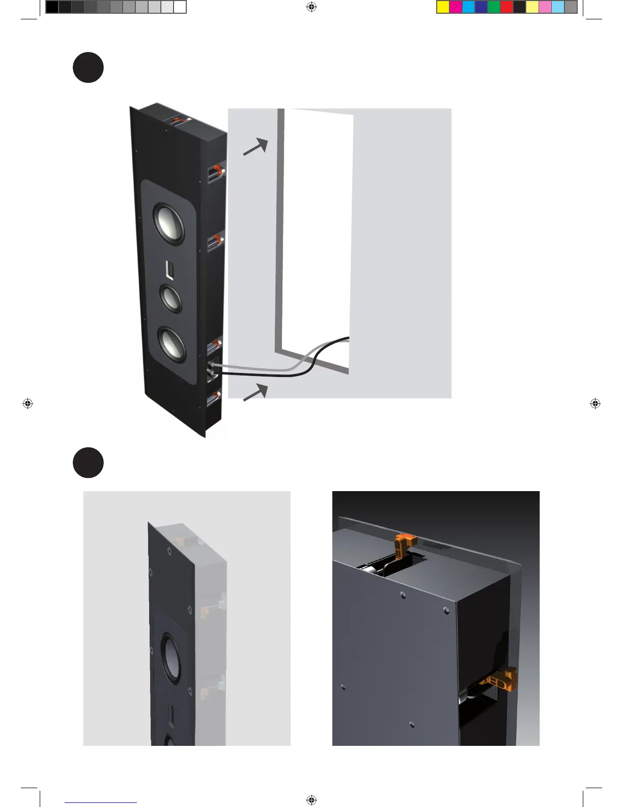 Connect the speaker cables and place the PL In Wall into
