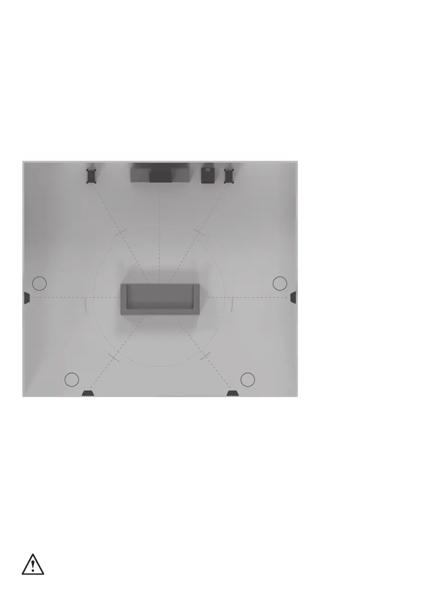 Verifique nas ilustrações abaixo os ângulos e posições ideais de cada altifalante no seu sistema de