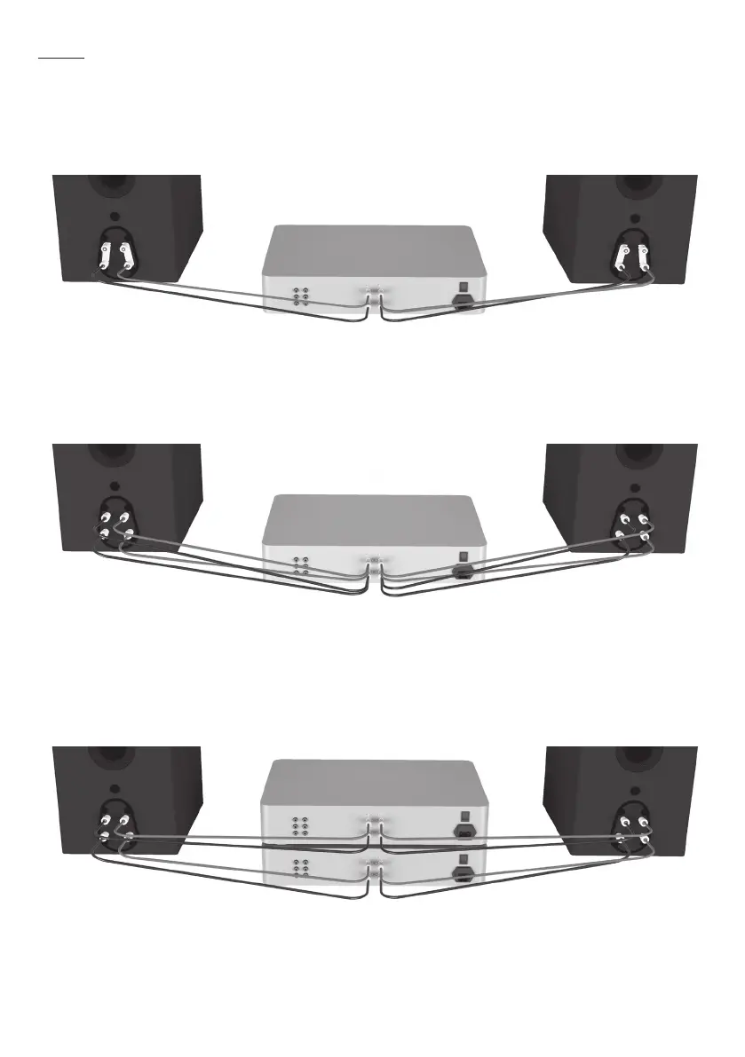 在双功放连接,您必须将一组电缆从一台功放连接到扬声器的顶部两个端子,再把另一组电缆从扬声器的